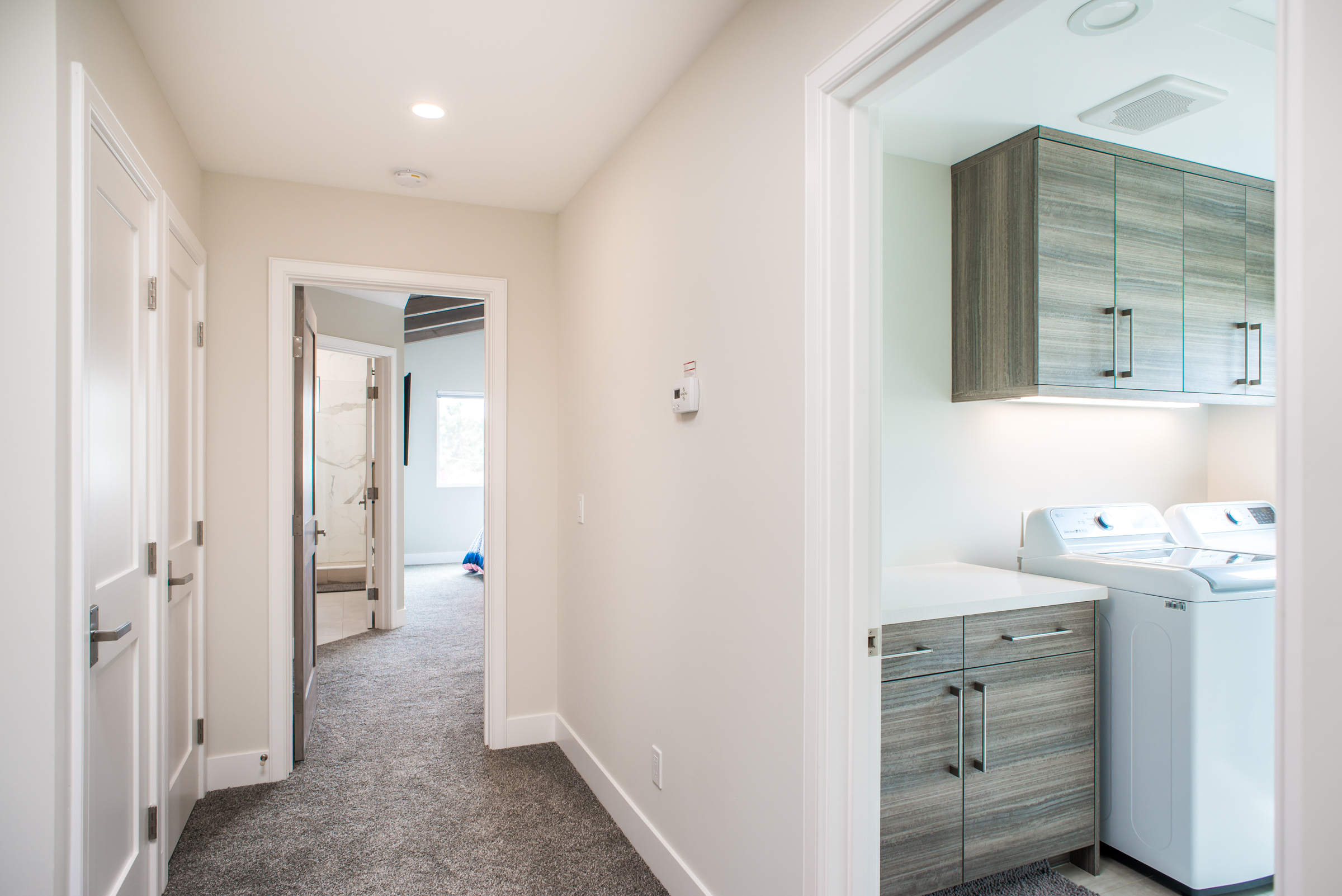 Upstairs, a custom primary entry door leads you into a spacious primary suite with planked vaulted ceilings, resort-style primary bath and oversized closet. A laundry room with a full-size washer and dryer are also upstairs along with an additional bedroom with adjoining bath.