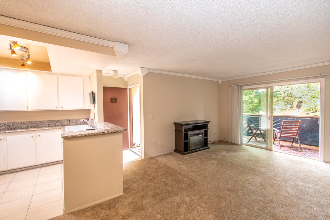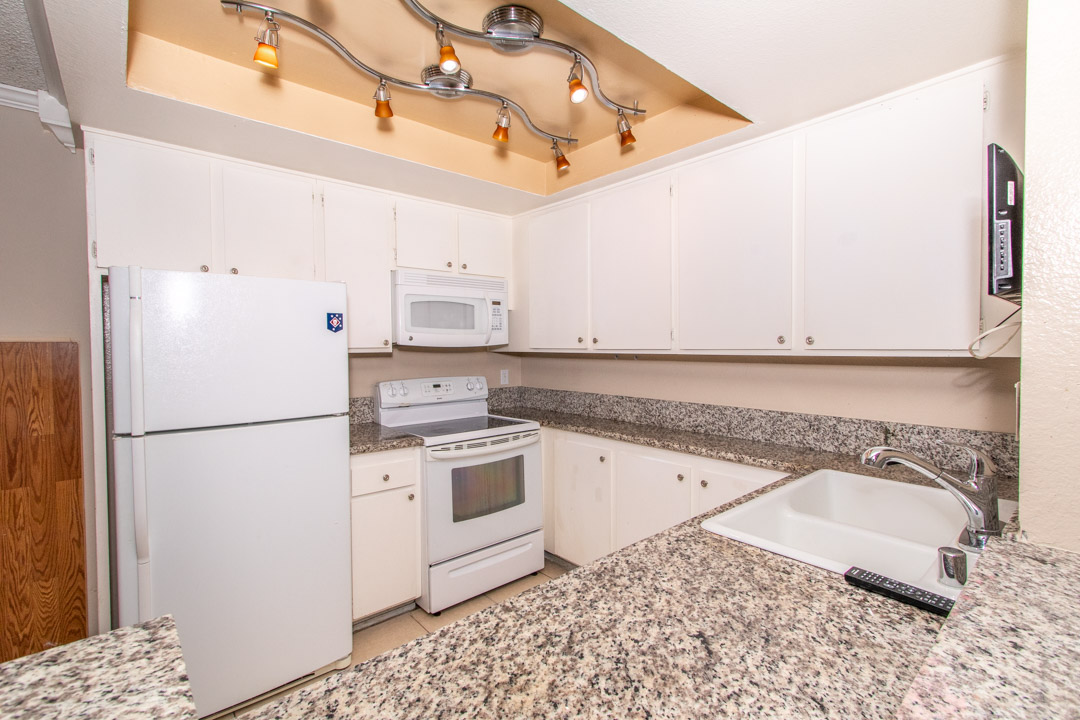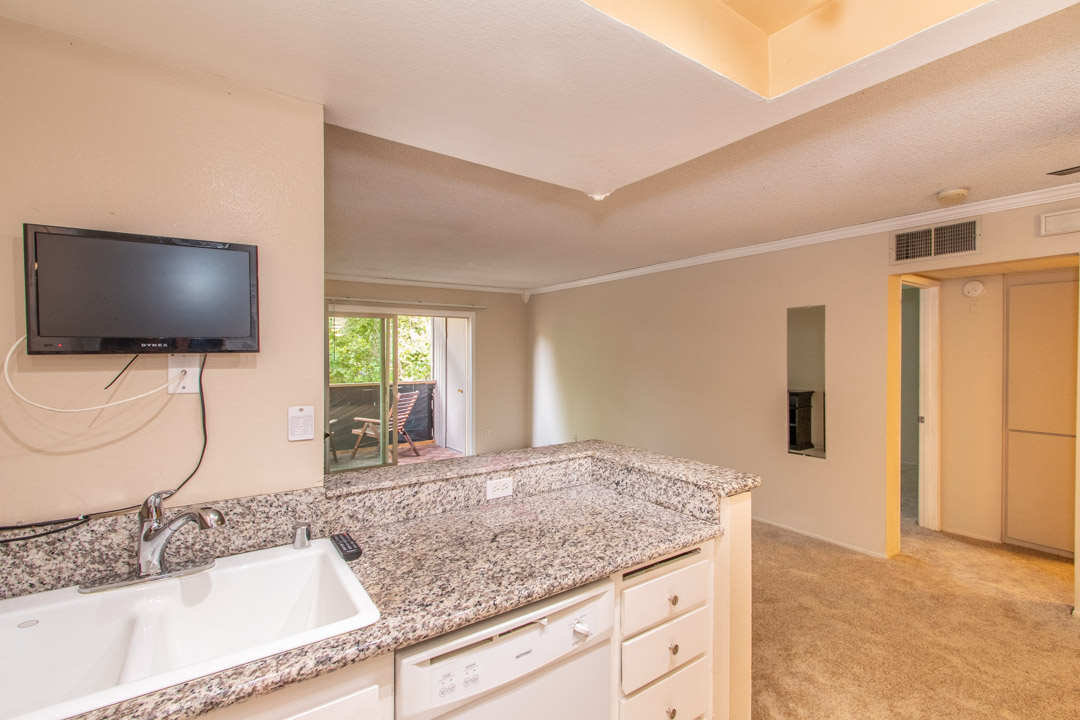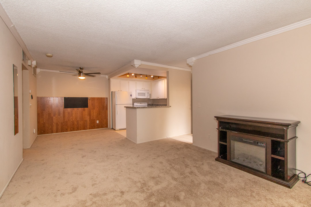 Largest Top Floor 1 bed 1 bath floorplan at Rancho Mission upgraded with granite kitchen and bath counters. Crown molding in living area and bedroom. Upgraded bath vanity, mirror and lighting. Electric fireplaces in both the living room and master bedroom. Mirrored wardrobe doors in bedroom. New carpet just installed. Central A/C. One assigned parking space plus 2 guest parking. Coffered kitchen ceiling with track lighting. Complex has several pools and spas bbqs and tennis courts. Near trolley stop and 24 hour fitness center, walk to Qualcomm. Well maintained condo complex. Easy access to freeways.