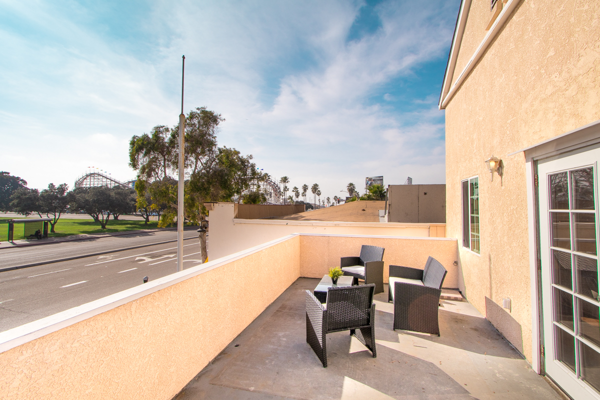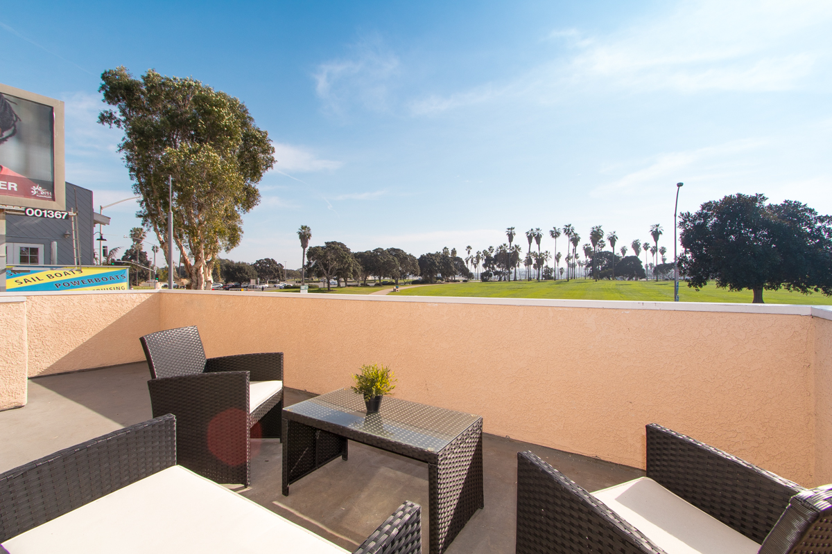 Private balcony/patio with views of Mission Bay and Mission Beach. Partially furnished. Short term rental great for anyone interested in living right in the center of everything Mission Beach and Mission Bay has to offer!
