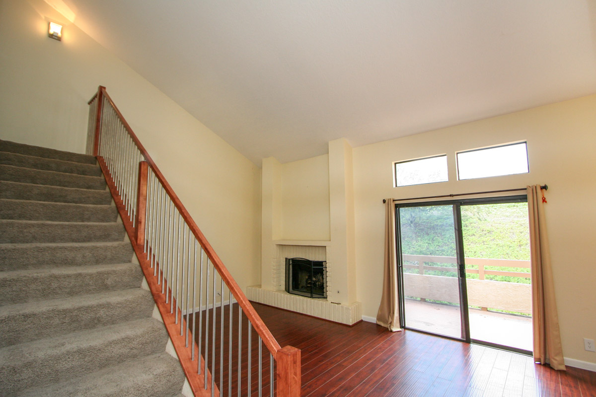 Beautifully updated 3br/2ba two-story home w/ vaulted ceilings & community amenities. Fully appointed kitchen with granite counters stainless steel appliances with tile flooring. Beautiful wood laminate floors start at the open dining area just off the kitchen and extend through the main living area and into both of the bedrooms. An extra large patio slider off the living area opens to a large private deck overlooking green hillside and giving the main living space lots of natural light. There is also and additional finished room off of the 3rd bedroom that can act as an office, playroom, crafts room or home gym. Along with the large main area patio, there are also private patios off of the master bedroom and second story loft. There are 2 full bathrooms, one conveniently located at the center of the main floor living area and one at the master bedroom. Laundry hookups for full sized units.
