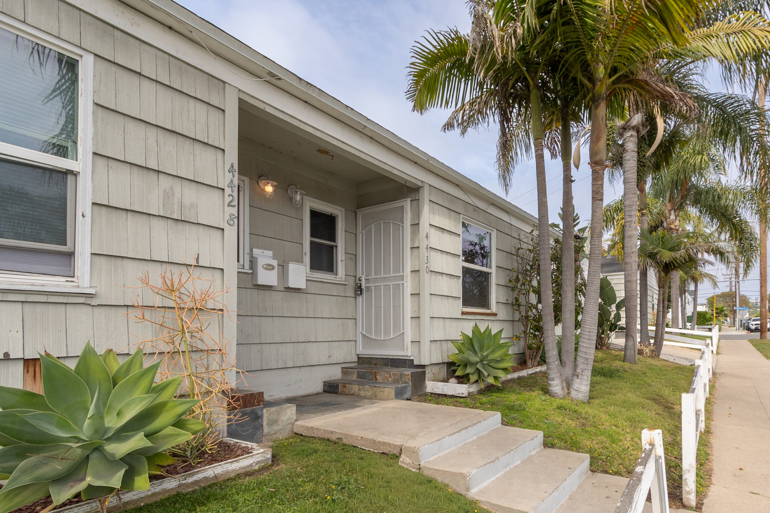 Fabulous opportunity to live at the beach! This charming 2 bedroom, 1 bath duplex sits on a corner lot in a prime Pacific Beach location, just 8 blocks from the ocean and equally close to the bay. The living room features original wood floors, and the unit has plenty of vintage character throughout. Enjoy a shared, fully fenced backyard with a spacious patio and grassy area, perfect for relaxing outdoors. Shared coin-operated laundry is also available.