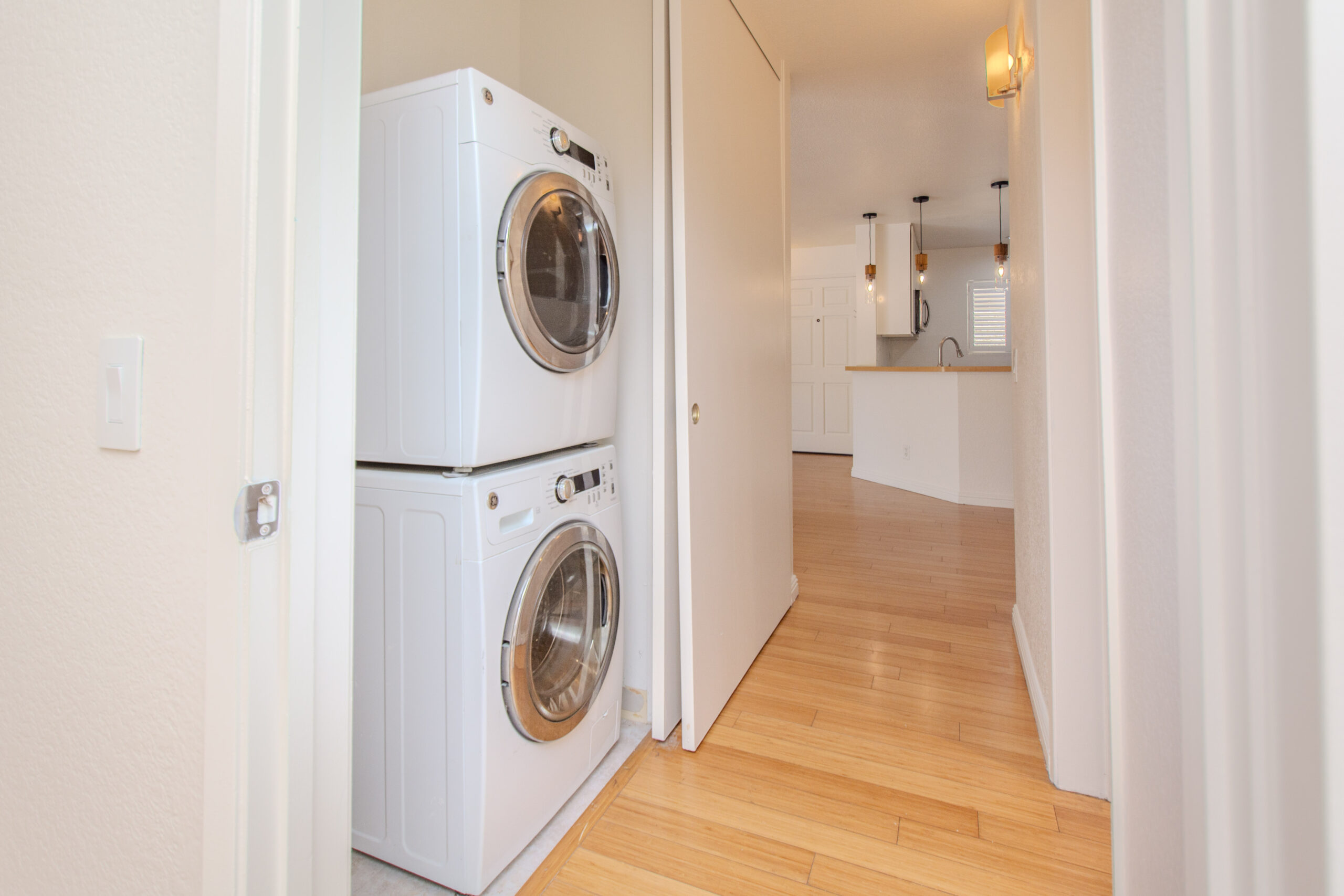 Welcome to this spacious 2-bedroom, 2-bathroom condo in the City Scene complex, perched on the bluffs of Fashion Hills/Mission Valley. The bright and open floor plan seamlessly connects the living area/kitchen and both bedrooms to a large private patio, ideal for relaxing and entertaining. Kitchen is open to the living room and features ample cabinet space and stainless steel appliances. Both bedrooms are generously sized with generous closet storage. Neutral finishes, fixtures, and wood laminate flooring throughout. In-unit laundry is conveniently situated in the hallway. Detached tandem garage included. Experience resort-style living with amenities such as a swimming pool, exercise room, tennis courts, tree lined streets and lush green belts.