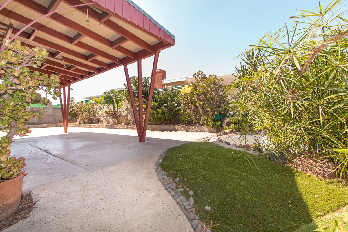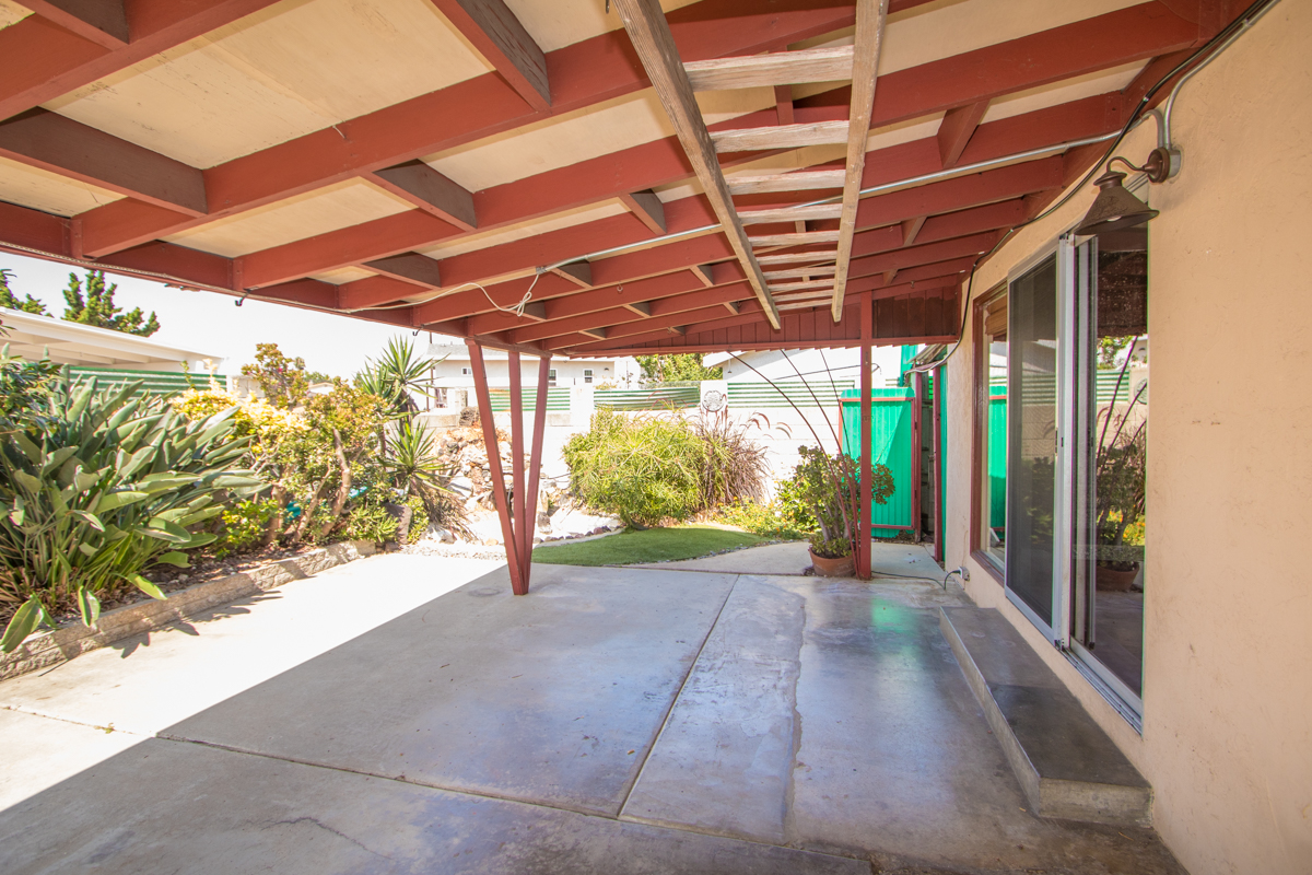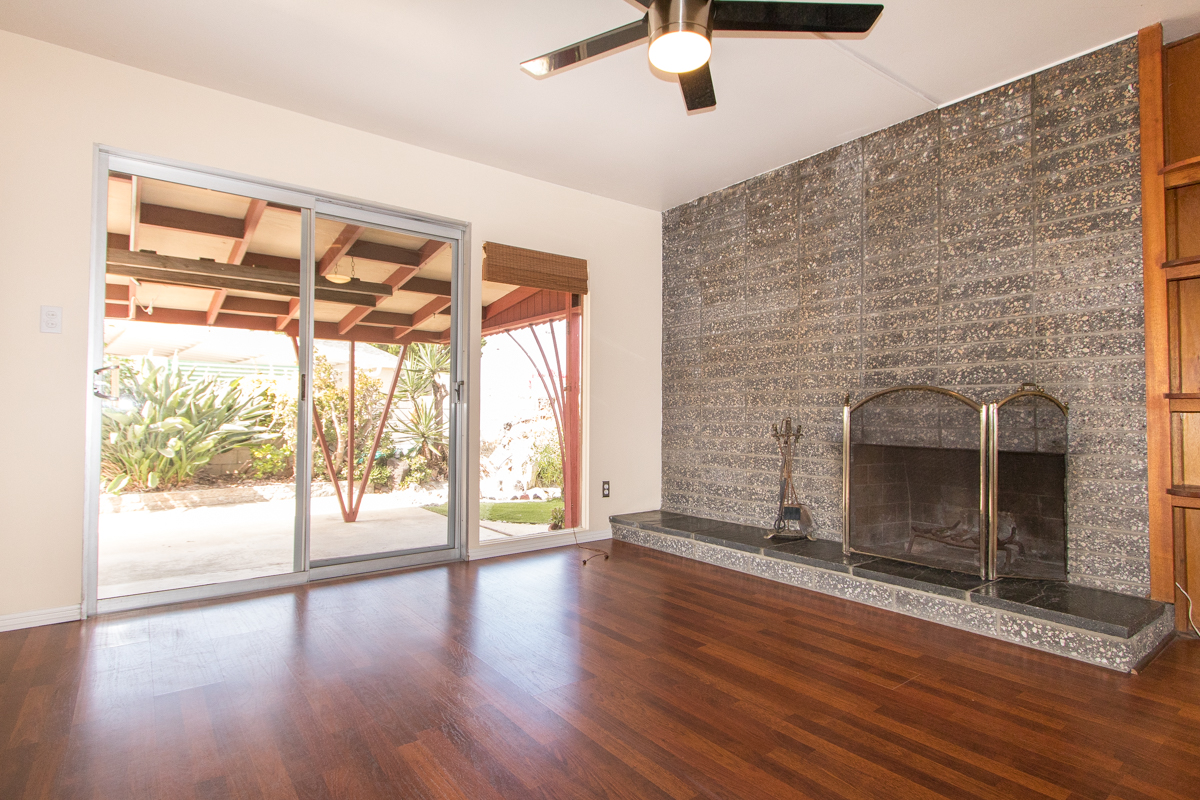 Charming mid-century inspired 3 bedroom/2 bath house in Clairemont with a spacious single-level layout. The bright contemporary kitchen features stainless steel appliances and seamlessly flows into a dining area with a cozy grey stone fireplace, creating a warm and inviting atmosphere. Large sliding glass doors in both the living room and the dining area adds extra light and access to the backyard covered patio area, the perfect setting for al fresco dining and hosting gatherings! With classic wood flooring in the kitchen, dining and living areas, ample storage throughout, in-unit laundry, and covered parking, this home combines convenience with classic appeal.