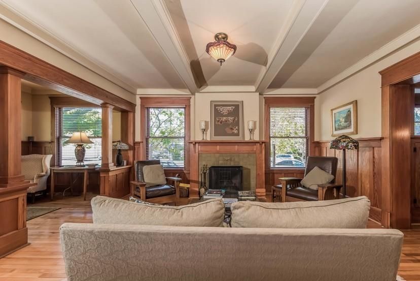 This stunning Historic (Mills Act registered) Prairie Style home nestled in the heart of Bankers Hill boasts quality, charm & the possibility to live and work all within one dwelling. Renovated true to it's character featuring custom woodwork, box beam ceilings, birch hardwood floors, beautiful built-ins and wood crown molding and baseboards throughout. The 2-story interior includes a formal living room with fireplace, a large gourmet kitchen with high-end appliances, dining room and TV room that compliment the 6 bedrooms and 4 baths (2full/2half). The second floor master suite has two large closets and a gorgeous bathroom finished with subway title, pedestal sinks, oversized pedestal tub and walk-in Carrera marble shower .
